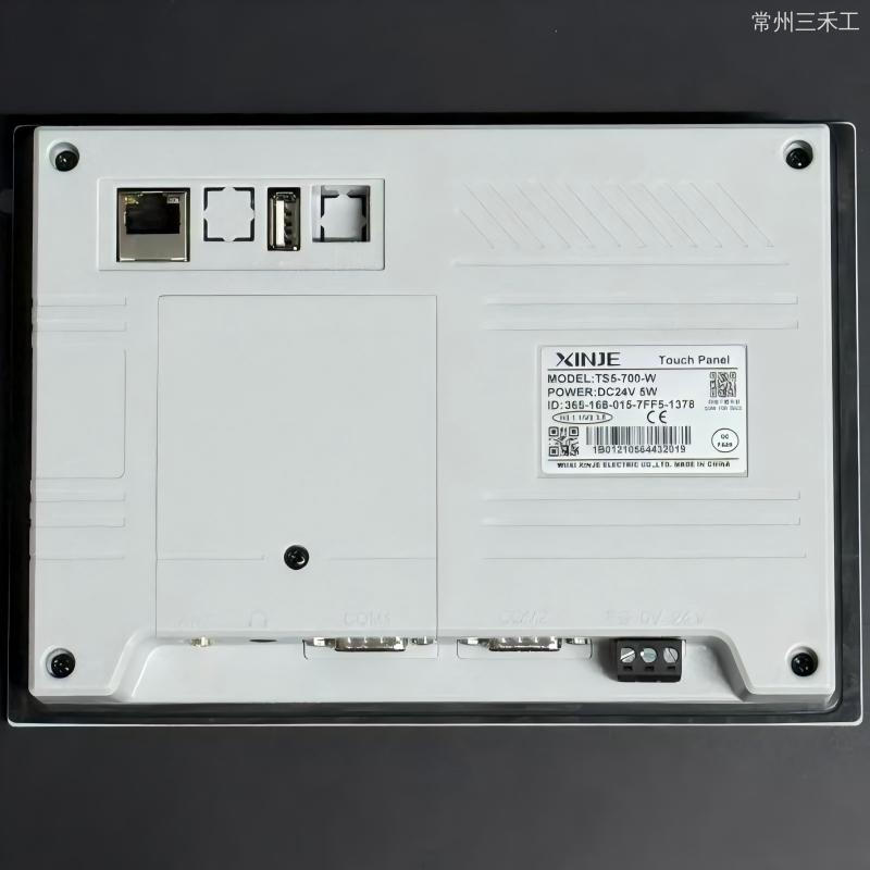 信捷触摸屏,TS5系列7.0寸,标配WiFi连接,基于Linux系统,采用Cortex-A7处理器,主频1GHz, 内置128MB内存,1677万色,分辨率800*480,2个通讯口,COM1口支持RS232/RS485, COM2口支持RS232/RS485/RS422,1个USB-A ,支持CSV数据导入导出和U盘下载程序,1个音频接口,支持连接音箱输出音频,1个以太网接口,支持MODBUS TCP、 OPC、MQTT协议,支持网口下载,支持远程信息化连接;