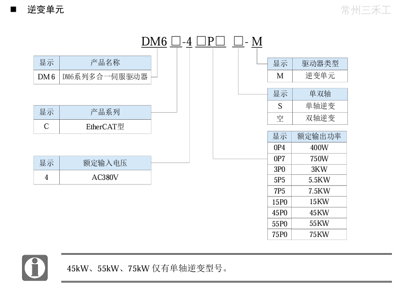 信捷伺服驱动器,EtherCAT总线型多机传动伺服驱动器6输入4输出,输出电流100A,详情请下载DM6C系列伺服驱动器用户手册