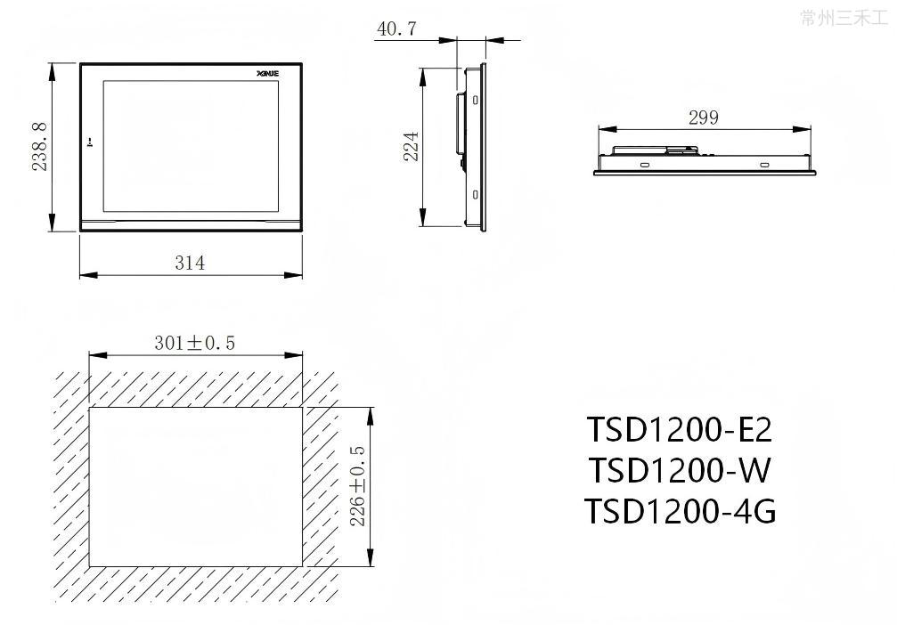 信捷触摸屏,12英寸,标配WiFi连接,基于Linux系统,采用Cortex-A7处理器,主频1.2GHz,内置256MB内存,1677万色,分辨率1024*768,2个通讯口,COM1口支持RS232/RS485,COM2口支持RS232/RS485/RS422,2 个USB-A 口,支持CSV数据导入导出和U盘下载程序,1个Type-c接口,支持下载程序,1个音频接口,支持连接音箱输出音频,2个以太网接口,支持MODBUSTCP、OPC、MQTT协议,支持网口下载,支持远程信息化连接;开孔尺寸:301*226,可垂直安装,使用TouchwinPro软件编辑工程;