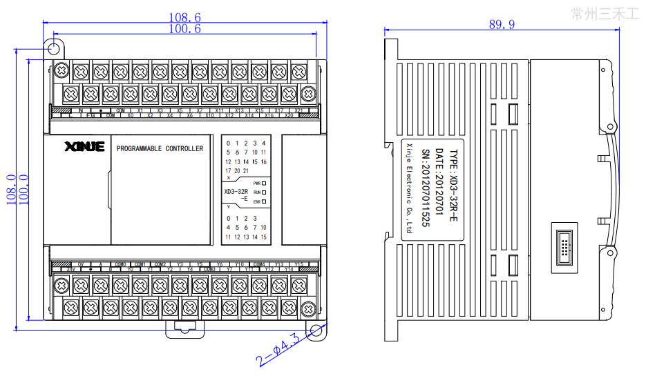 XD3-32R-E 右侧可扩展10只模块,左侧可扩展1只ED模块,本机可扩展1只BD模块