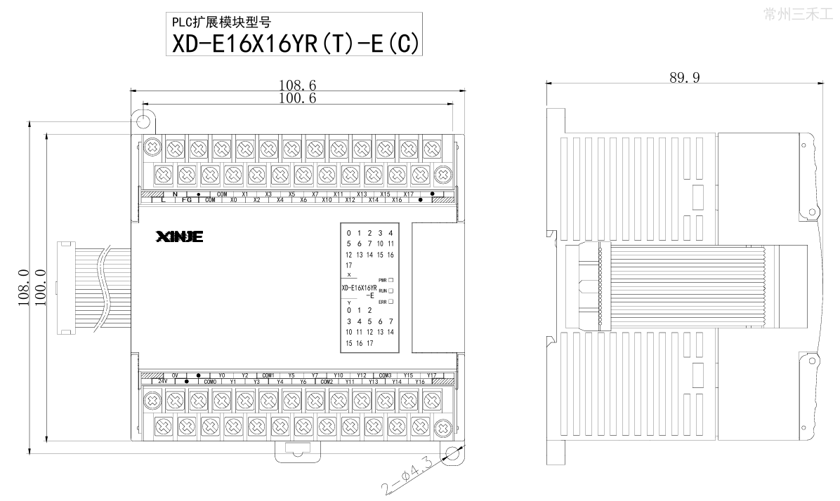 信捷XD系列PLC扩展模块,数字量右扩模块,扩展16点直流输入,16点继电器输出;供电电源AC100~240V,NPN输入;