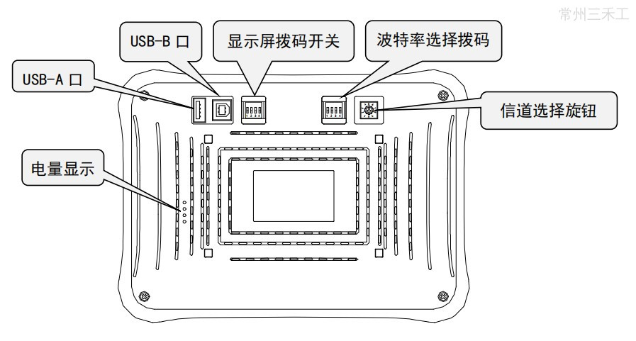 | 信道调节旋钮 | 无线通信信道选择(仅 MTG765-UT 有) |