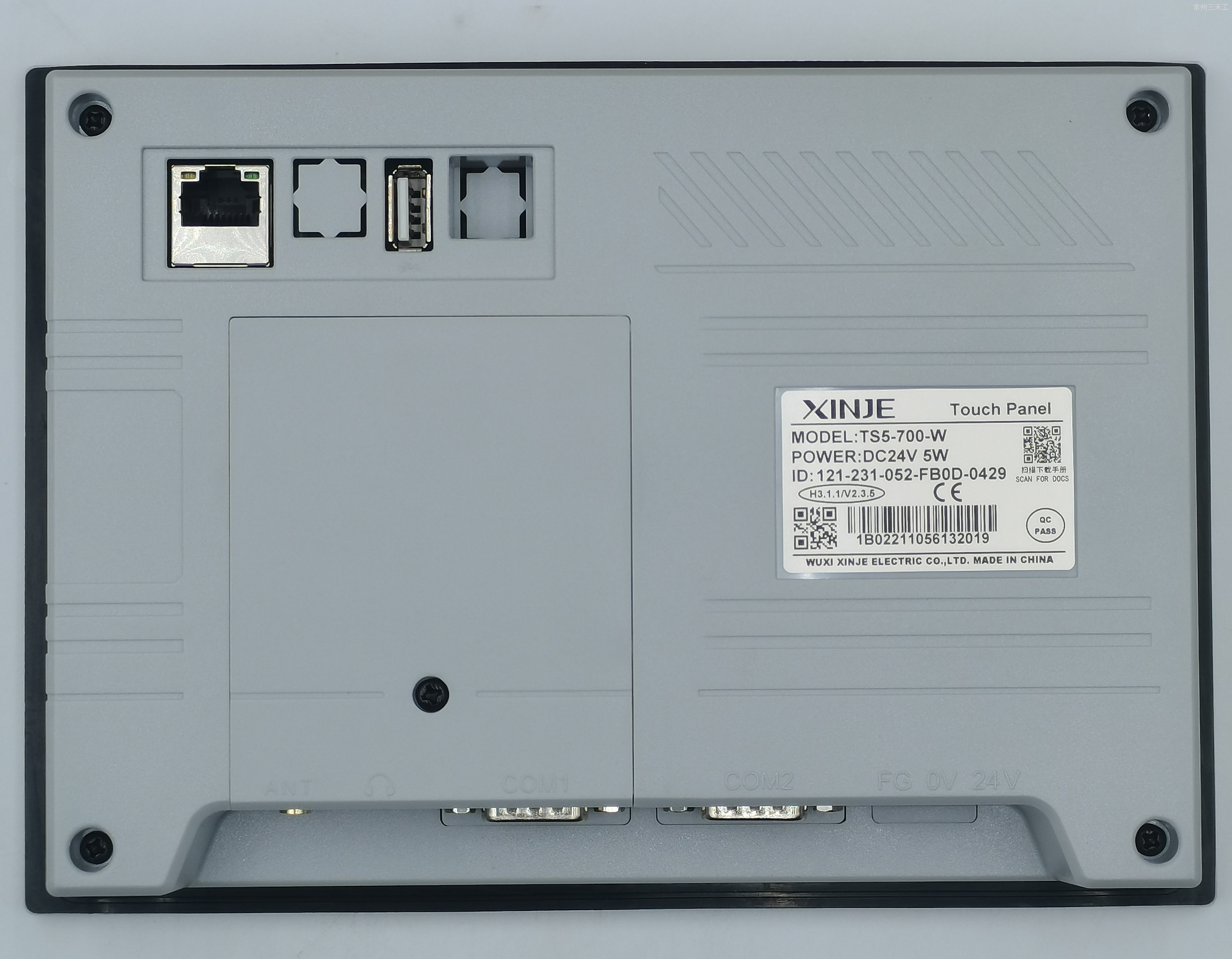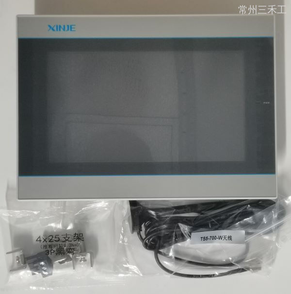 信捷触摸屏,TS5系列7.0寸,标配WiFi连接,基于Linux系统,采用Cortex-A7处理器,主频1GHz, 内置128MB内存,1677万色,分辨率800*480,2个通讯口,COM1口支持RS232/RS485, COM2口支持RS232/RS485/RS422,1个USB-A ,支持CSV数据导入导出和U盘下载程序,1个音频接口,支持连接音箱输出音频,1个以太网接口,支持MODBUS TCP、 OPC、MQTT协议,支持网口下载,支持远程信息化连接;