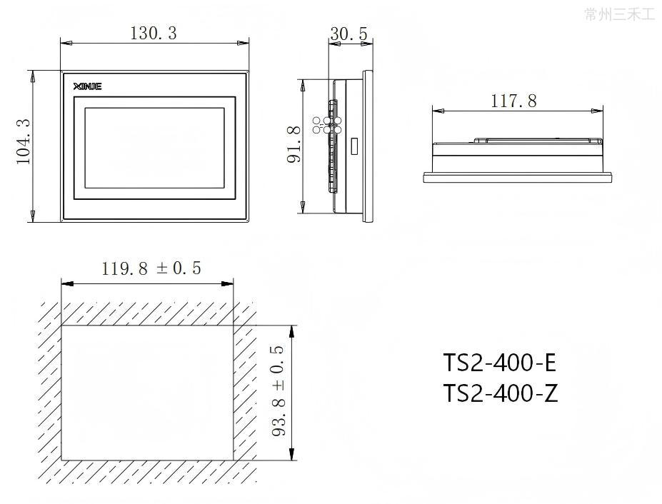 信捷触摸屏,TS2系列4.3寸,基于Linux系统,采用Cortex-A7处理器,主频1GHz,内置64MB内存,1677万色,分辨率800*272,2个通讯口,COM1口支持RS232,COM2口支持RS485,USB-B下载方式,1个USB-A口,支持CSV数据导入导出和U盘下载程序;开孔尺寸:119.8*93.8,可垂直安装,使用Touchwin Pro 软件编辑工程;(*注:USB-A口与 USB-B口不可同时使用,PFW 存储机制为每 1 分钟存储一次)