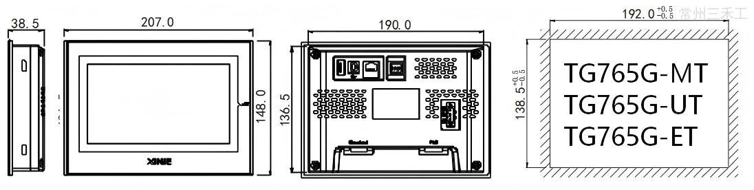 信捷触摸屏,TG薄款,灰色,7.0寸,1677万色,分辨率800*480,400MHz主频,128MB存储器,2个通讯口,支持X-Net总线(仅单屏模式,最高波特率为115200),PLC口支持RS232/RS485/RS422,Download口支持RS232/RS485,USB-B下载方式,1个USB-A口支持CSV导入导出和U盘下载程序,1个以太网接口,支持MODBUS TCP协议;开孔尺寸:192.0*138.5,可垂直安装;