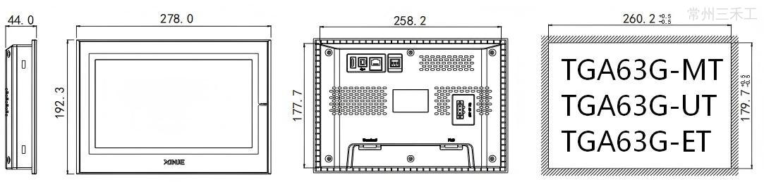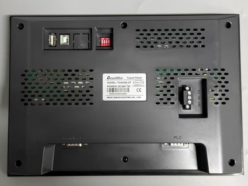信捷触摸屏,TG薄款,灰色,10.1英寸屏,带U盘口,1677万色,分辨率1024*600,400MHz主频,128MB存储器,2个通讯口,支持X-Net总线(仅单屏模式,最高波特率为115200),PLC口支持RS232/RS485/RS422,Download口支持 RS232/RS485,USB-B下载方式,1个USB-A口,支持CSV数据导入导出和U盘下载程序;开孔尺寸:260.2*179.7,可垂直安装;