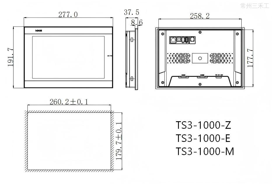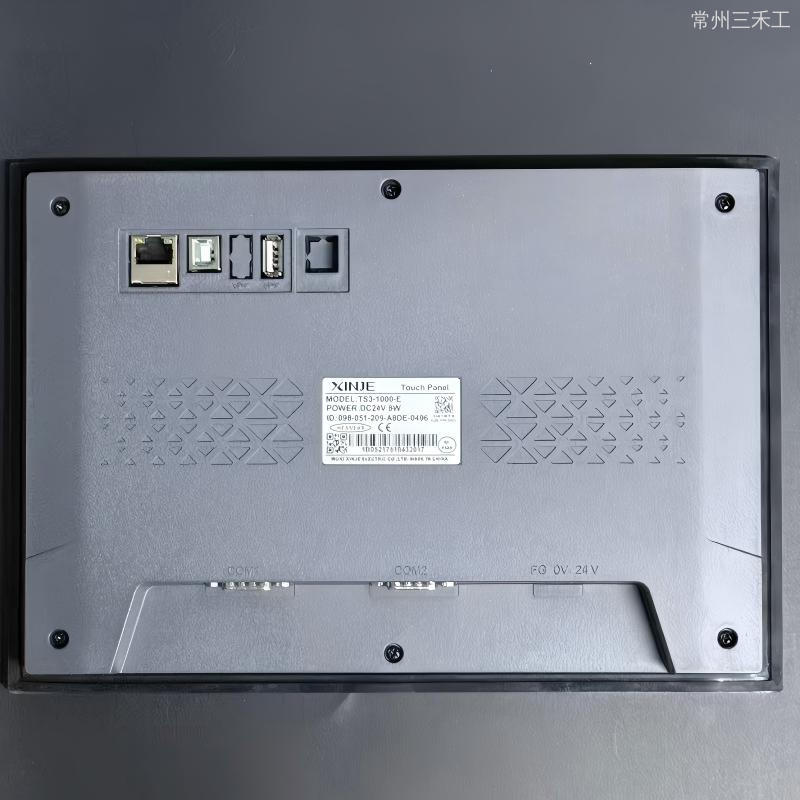 信捷触摸屏,TS3系列10.1寸屏,基于Linux系统,采用Cortex-A8处理器,主频600MHz,内置128MB内存,1677万色,分辨率800*480,2个通讯口,COM1口支持 RS232/RS485,COM2口支持RS232/RS485/RS422,USB-B下载方式,1个USB-A口,支持CSV数据导入导出和U盘下载程序,1个以太网接口,支持MODBUS TCP协议,支持网口下载;开孔尺寸:192.0*138.5,可垂直安装,使用 Touchwin Pro 软件编辑工程;(*注:USB-A口与USB-B口不可同时使用)