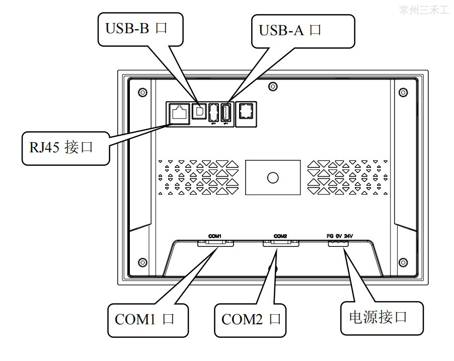 ![]() | 以太网接口 | 连接网线上/下载 HMI 程序,支持与信捷、西门子、三菱等网口设备,以及其它 Modbus-TCP 设备通讯 |