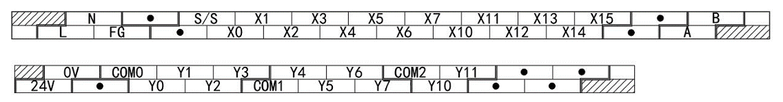 输出 点数 | 8点 Y0~Y7 | 10点 Y0~Y11 | 14点 Y0~Y15 | 20点Y0~Y21 | 24点Y0~Y27 | |||